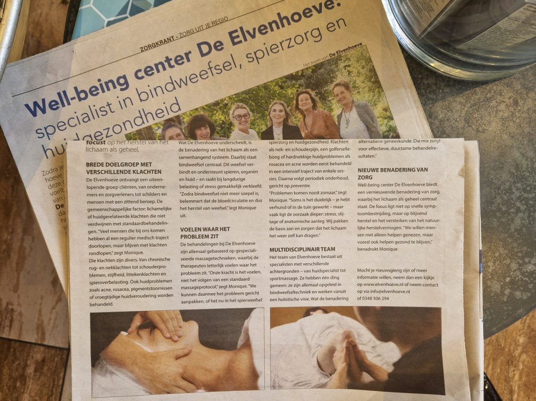 Een prachtig, helder artikel over De Elvenhoeve in de Zorgkrant Woerden e.o. – met oog voor onze visie en aanpak. Well-being center De Elvenhoeve: specialist in bindweefsel, spierzorg en huidgezondheidZodra je richting De Elvenhoeve rijdt en de straat van deze charmante locatie inslaat, voelt het alsof je de hectiek van alledag achter je laat. De […]
